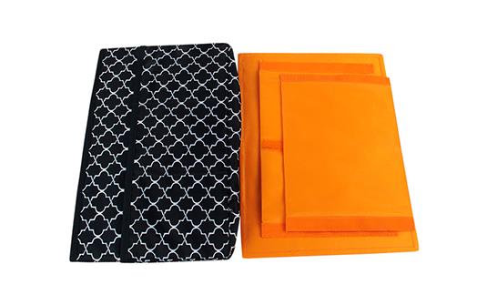 袋子整體設計成可以折疊的樣式,這樣的設計可以讓產品在閑置的情況下存放在衣柜,儲物架等地方,不占用多余的空間。